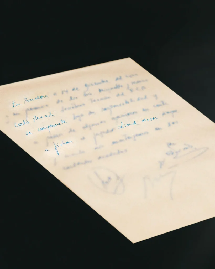 Η συγκεκριμένο αντικείμενο εξασφάλισε την μετακόμιση του Αργεντινού σούπερ σταρ από την Αργεντινή στην ακαδημία της Μπαρτσελόνα, όπου έκανε τα πρώτα του βήματα για να γίνει θρύλος της ομάδας και να γράψει ιστορία στον χώρο του ποδοσφαίρου.