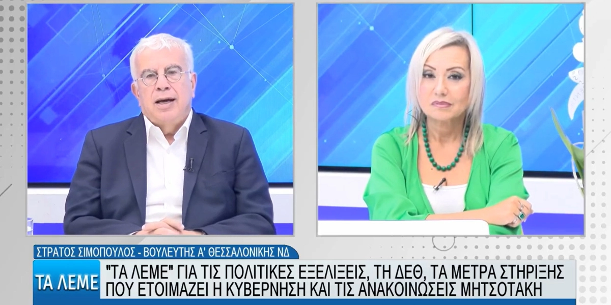 Για τα Μεγάλα Έργα της Θεσσαλονίκης, όσα είπε ο πρωθυπουργός στην πρόσφατη επίσκεψή του στην πόλη αλλά και για τη ΔΕΘ και την Καινοτομία μίλησε στη ΒΕΡΓΙΝΑ ΤΗΛΕΟΡΑΣΗ, στην εκπομπή «ΤΑ ΛΕΜΕ» και στη δημοσιογράφο Χριστίνα Τσόρμπα, ο βουλευτής Α’ Θεσσαλονίκης της ΝΔ, Πρόεδρος της Επιτροπής Έρευνας και Τεχνολογίας της Βουλής Στράτος Σιμόπουλος.