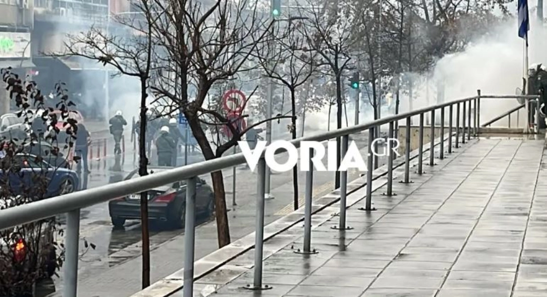 Τα άτομα έφυγαν από το Δικαστικό Μέγαρο και κατευθύνθηκαν προς τις οδούς Λαγκαδά και Αγίου Δημητρίου.