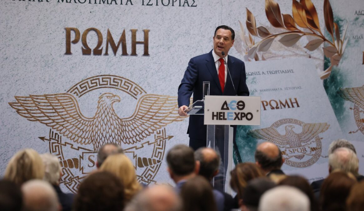 Σε μια κατάμεστη αίθουσα στο Συνεδριακό Κέντρο «Ιωάννης Βελλίδης» στη Θεσσαλονίκη, ο Υπουργός Υγείας και Αντιπρόεδρος της ΝΔ Άδωνις Γεωργιάδης παρουσίασε τον τρίτο τόμο της σειράς ΑΠΛΑ ΜΑΘΗΜΑΤΑ ΙΣΤΟΡΙΑΣ, με τίτλο «ΡΩΜΗ».