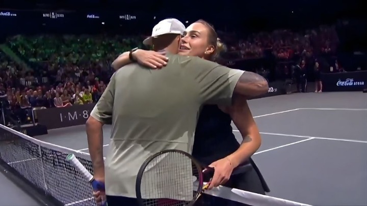 … απαστράπτουσα Αρίνα Σαμπαλένκα, μετά την εντυπωσιακή είσοδός της με μία καπαρντίνα γεμάτη στρας, δεν κατάφερε να προβάλει αντίσταση στον αγώνα επίδειξης της «Μάχης των Φύλων» απέναντι στον Νικ Κύργιο, στο Ντουμπάι.