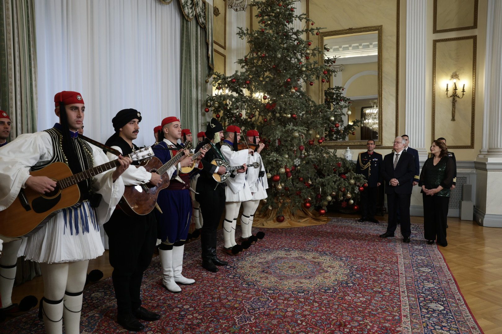 Η Μπάντα των Ενόπλων Δυνάμεων και η Προεδρική Φρουρά έψαλαν τα κάλαντα της Πρωτοχρονιάς στον Πρόεδρο της Δημοκρατίας Κωνσταντίνο Αν. Τασούλα και τη σύζυγό του Φανή Σταθοπούλου.