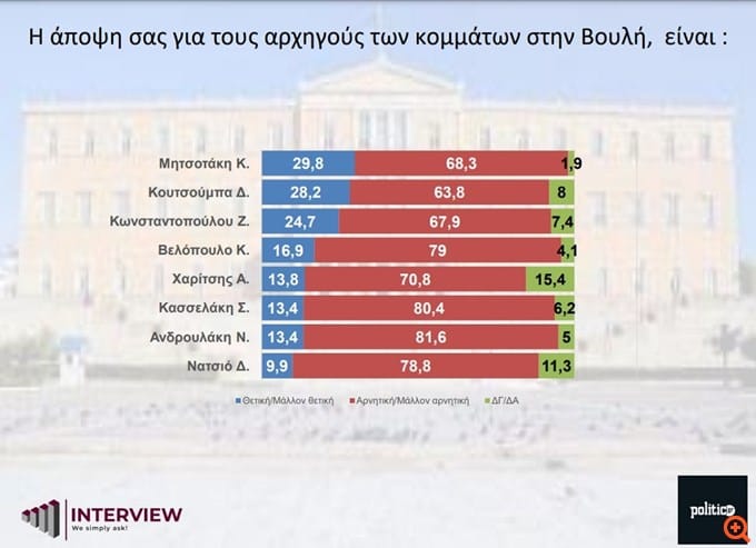 Δημοσκόπηση Interview: Παραμένει δημοφιλέστερος πολιτικός αρχηγός ο Μητσοτάκης