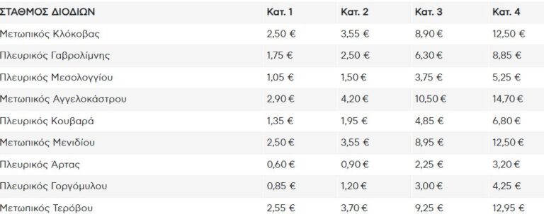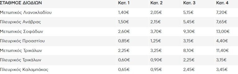 Οι νέες τιμές των διοδίων για το 2026 είναι οι παρακάτω:
