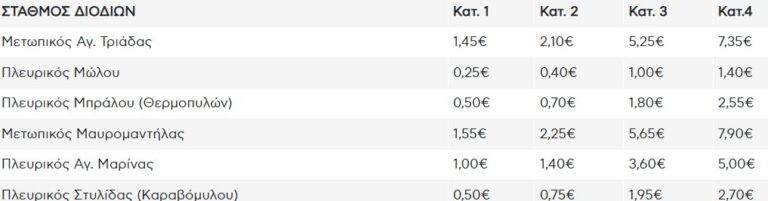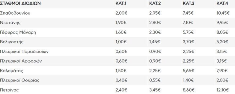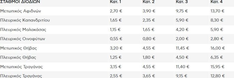 (Δεν έχουν ανακοινωθεί προς το παρόν οι νέες τιμές διοδίων)