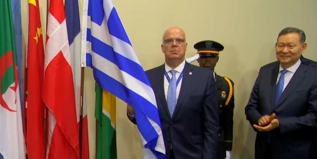 «Με υπερηφάνεια και αίσθημα ευθύνης σε αυτή την όμορφη συμβολική τελετή υψώνεται η σημαία της Ελλάδας, καθώς η χώρα μας αναλαμβάνει σε μια ιδιαίτερη κρίσιμη συγκυρία τη θέση μη μονίμου μέλους του Συμβουλίου Ασφαλείας για την διετία 2025- 2026.