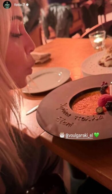 Συγκεκριμένα, στις 9 Μαρτίου, η Ελένη γιόρτασε τα γενέθλιά της μακριά από την Ελλάδα, αλλά είχε στο πλευρό της τον αγαπημένο της. Ο Φώτης, που συνεχίζει την ποδοσφαιρική του καριέρα στο εξωτερικό, φρόντισε να δημιουργήσει μια ζεστή και συγκινητική ατμόσφαιρα κατά τη διάρκεια ενός δείπνου σε εστιατόριο. Το προσωπικό του εστιατορίου εμφανίστηκε με ένα γλυκό αφιερωμένο στην Ελένη, πάνω στο οποίο ήταν γραμμένη η ευχή «Χρόνια πολλά Ελένη». Η ίδια έσβησε τα κεράκια με χαμόγελο, ενώ ο Φώτης κατέγραψε τη στιγμή, κρατώντας για πάντα ζωντανή τη μνήμη αυτής της ρομαντικής έκπληξης.