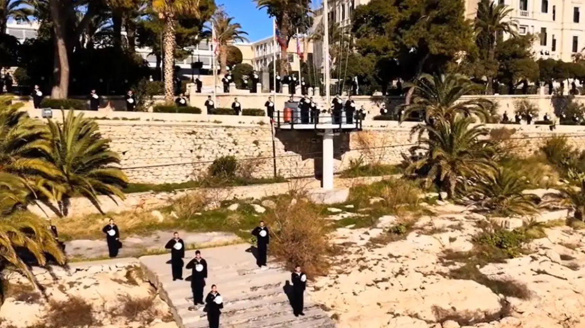 Με τον δικό τους τρόπο απέδωσαν τιμές στην πρώτη ελληνική Belharra, τη φρεγάτα Κίμων, οι Ναυτικοί Δόκιμοι ενώ το νέο πλοίο του Πολεμικού Ναυτικού κατευθυνόταν προς τον ναύσταθμο της Σαλαμίνας.