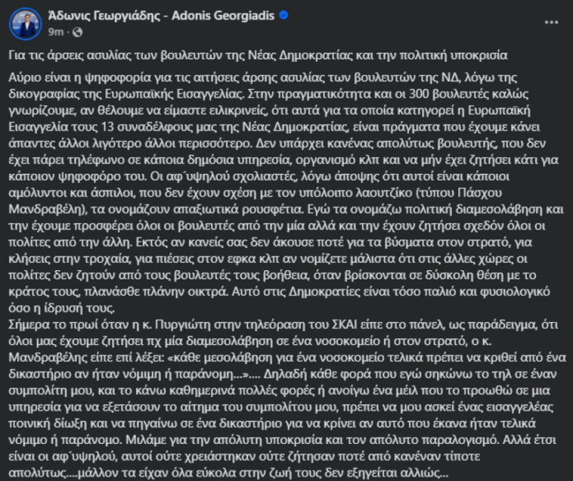 Η ανάρτηση του Άδωνι Γεωργιάδη: