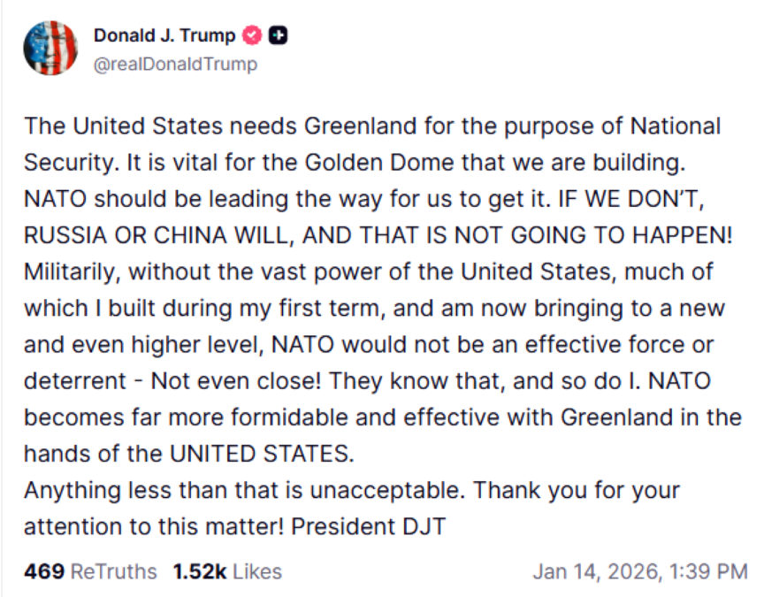 Η ανακοίνωση συνέπεσε με συνάντηση αξιωματούχων Δανίας και Γροιλανδίας με Αμερικανούς αξιωματούχους στην Ουάσινγκτον, λίγες ώρες μετά τις δηλώσεις Τραμπ ότι η Γροιλανδία πρέπει να βρεθεί υπό αμερικανικό έλεγχο, προβάλλοντας τη σημασία του νησιού για το ΝΑΤΟ.