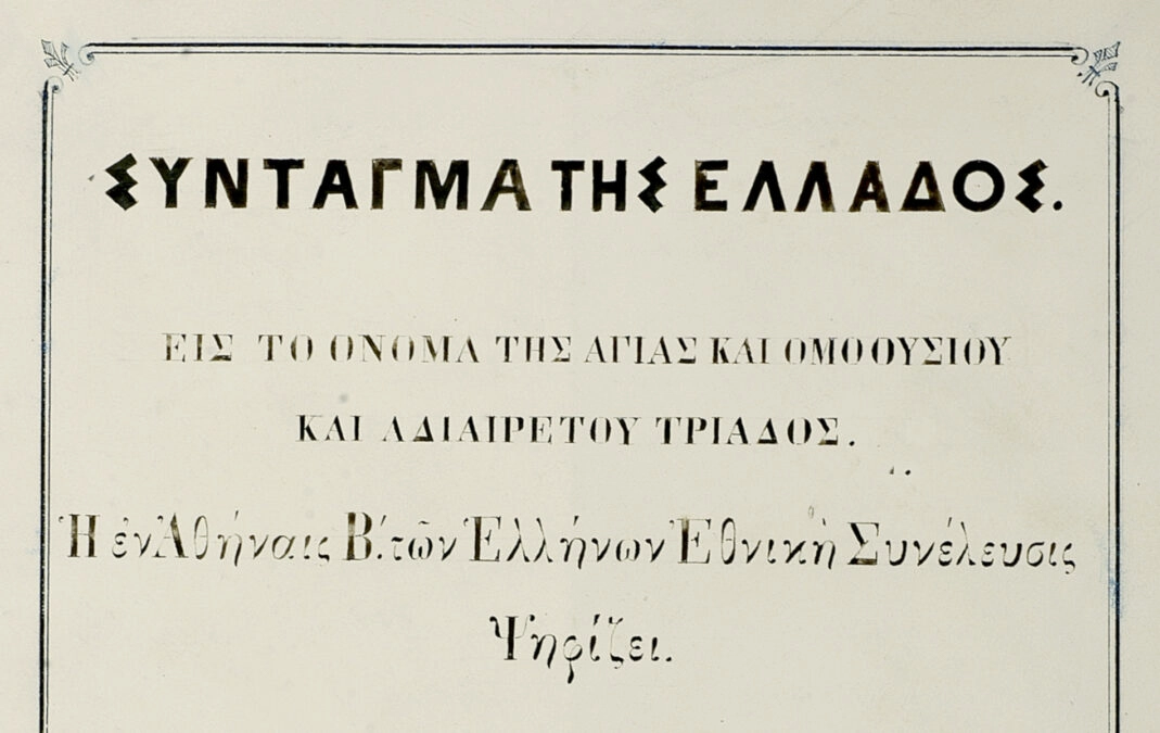 Κατ’ αναλογίαν το αυτό ισχύει και ως προς το προοίμιο του Συντάγματος μας το οποίο υποδηλώνει την ιστορική παράδοση μας η οποία είναι αμιγώς Χριστιανική, εξ αυτού λοιπόν του λόγου αναφέρεται (εις την προμετωπίδα του Συντάγματος) ότι το Σύνταγμα ενταύθα ψηφίζεται εις το Όνομα της Αγίας Ομοουσίου και Αδιαιρέτου Τριάδος, συγκεφαλαιώνοντας εύγλωττα την μακραίωνη σύζευξη Ορθοδοξίας και Χριστιανισμού ως μία καινοφανή συμπύκνωση των ως άνω μεγεθών, αρχής γενομένης εκ της εξεγέρσεως των Ελλήνων ενόψει της πολιτειακής οργάνωσης του νεοπαγούς έθνους-Κράτους, με το οιονεί σύνθημα εν είδει επωδούς: «για του Χριστού την πίστη την Αγία και της Πατρίδας την Ελευθερία».