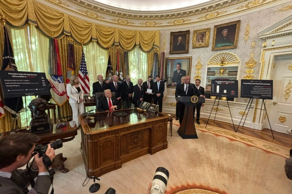 Δραματικές στιγμές εκτυλίχθηκαν στο Οβάλ Γραφείο το απόγευμα της Πέμπτης, στη διάρκεια συνέντευξης Τύπου, παρουσία Ντόναλντ Τραμπ, με θέμα τις μεγάλες εκπτώσεις που θα προσφέρουν οι φαρμακευτικές εταιρείες Novo Nordisk και Elli Lilly στα σκευάσματα αδυνατίσματος, που διαθέτουν στις ΗΠΑ, συμβάλλοντας στη μάχη καταπολέμησης της παχυσαρκίας.