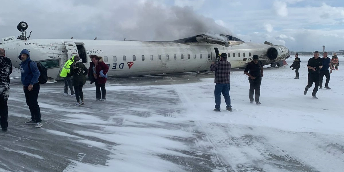 Η αμερικανική Υπηρεσία Πολιτικής Αεροπορίας (FAA) επιβεβαιώνει πως οι περίπου 80 επιβαίνοντες εγκατέλειψαν το αεροπλάνο με ασφάλεια. Το αεροσκάφος, ένα Bombardier CRJ-900, εκτελούσε την πτήση DL 4819 από τη Μινεάπολις των ΗΠΑ. Η καναδική τηλεόραση μεταδίδει βίντεο στο οποίο διακρίνεται το αεροσκάφος της Delta αναποδογυρισμένο στη χιονισμένη πίστα του διεθνούς αεροδρομίου Πίρσον. Τα αίτια της συντριβής παραμένουν αδιευκρίνιστα.