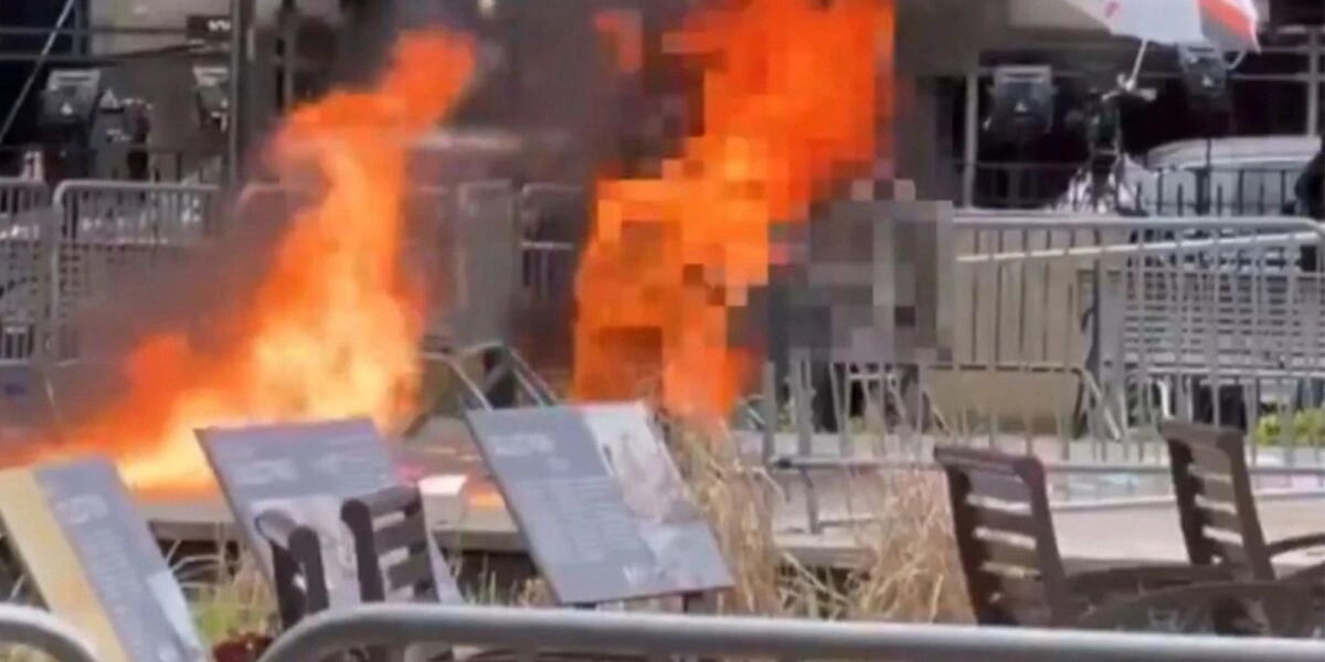 «Κάποιος αυτοπυρπολήθηκε», ακούστηκε να λέει ένας αστυνομικός. Τα ανησυχητικά πλάνα έδειχναν τον άνδρα σε καθιστή θέση ενώ τυλίχθηκε εντελώς στις φλόγες.