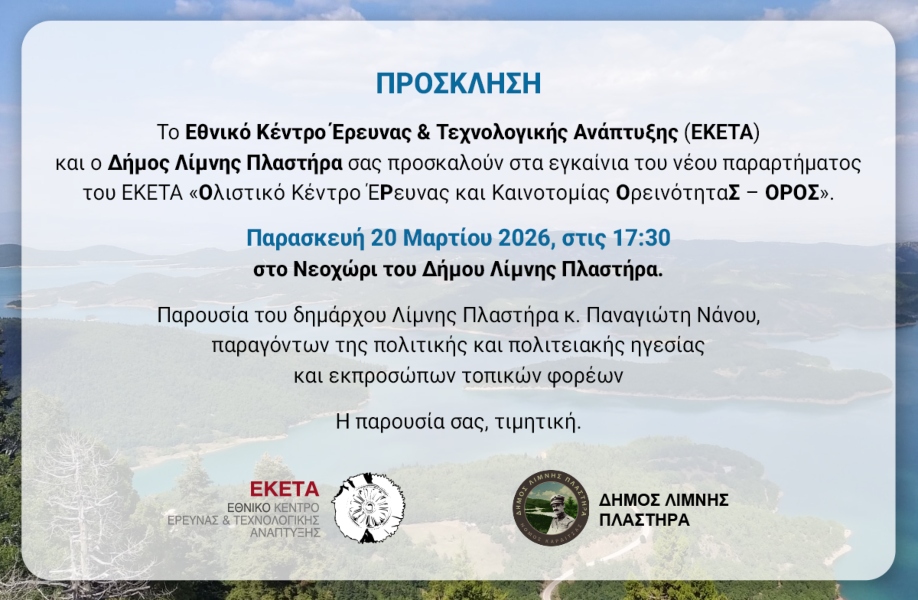 Ένα νέο ολιστικό Κέντρο Έρευνας και Καινοτομίας δημιουργείται στην καρδιά της Ορεινής Ελλάδας, σε μια περιοχή ιδιαίτερου φυσικού κάλλους, ως ζωντανό εργαστήριο σε θέματα έρευνας για δάση, λίμνες και ποτάμια και σχετικά με την αγροτική ανάπτυξη σε ορεινούς όγκους καθώς και την κτηνοτροφία και τον αγροτουρισμό.