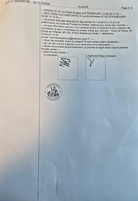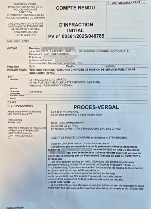 Στις 16/12/2025 περί ώρα 22:30, έφτασα συνοδευόμενος από αρκετούς φίλους δημοσιογράφους όπως εγώ, στο εστιατόριο AEDAEN, που βρίσκεται στην οδό 04-06 rue des Aveugles στο Στρασβούργο. Διευκρινίζω ότι ήρθαμε στο Στρασβούργο για τη συνέλευση στο Ευρωπαϊκό Κοινοβούλιο του μηνός Δεκεμβρίου.