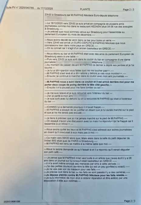 Με όλες τις λεπτομέρειες εξιστορεί και περιγράφει στη μήνυσή του το άγριο επεισόδιο του ξυλοδαρμού από τον ευρωβουλευτή Νίκο Παππά, ο δημοσιογράφος Νίκος Γιαννόπουλος.