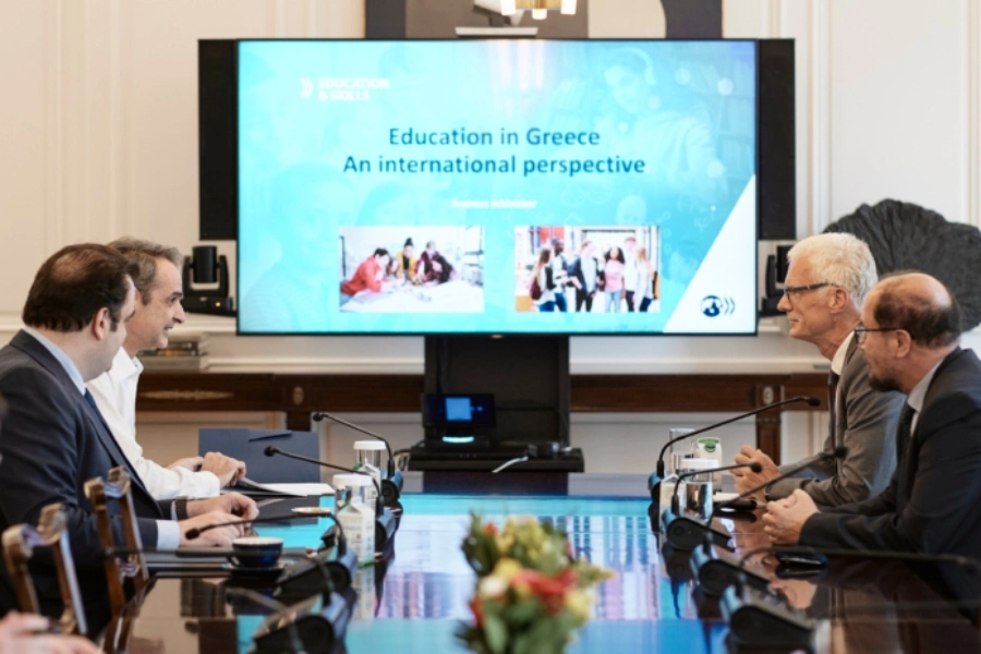 Ο Πρωθυπουργός Κυριάκος Μητσοτάκης συναντήθηκε στο Μέγαρο Μαξίμου με τον Andreas Schleicher, Διευθυντή για την Εκπαίδευση και τις Δεξιότητες του ΟΟΣΑ και ιδρυτή του προγράμματος αξιολόγησης μαθητικών επιδόσεων PISA.