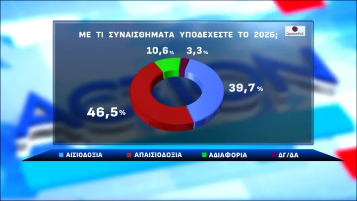Στο ερώτημα για τις προοπτικές του μέλλοντος, το 39,7% των πολιτών δηλώνει αισιόδοξο για το 2026, την ώρα που το 46,5% εμφανίζεται απαισιόδοξο. Η ακρίβεια και ο πληθωρισμός εξακολουθούν να αποτελούν τις βασικές πηγές ανησυχίας για τους πολίτες, ενώ ακολουθούν η οικονομία και η ανάπτυξη, η διαφθορά και το Κράτος Δικαίου.