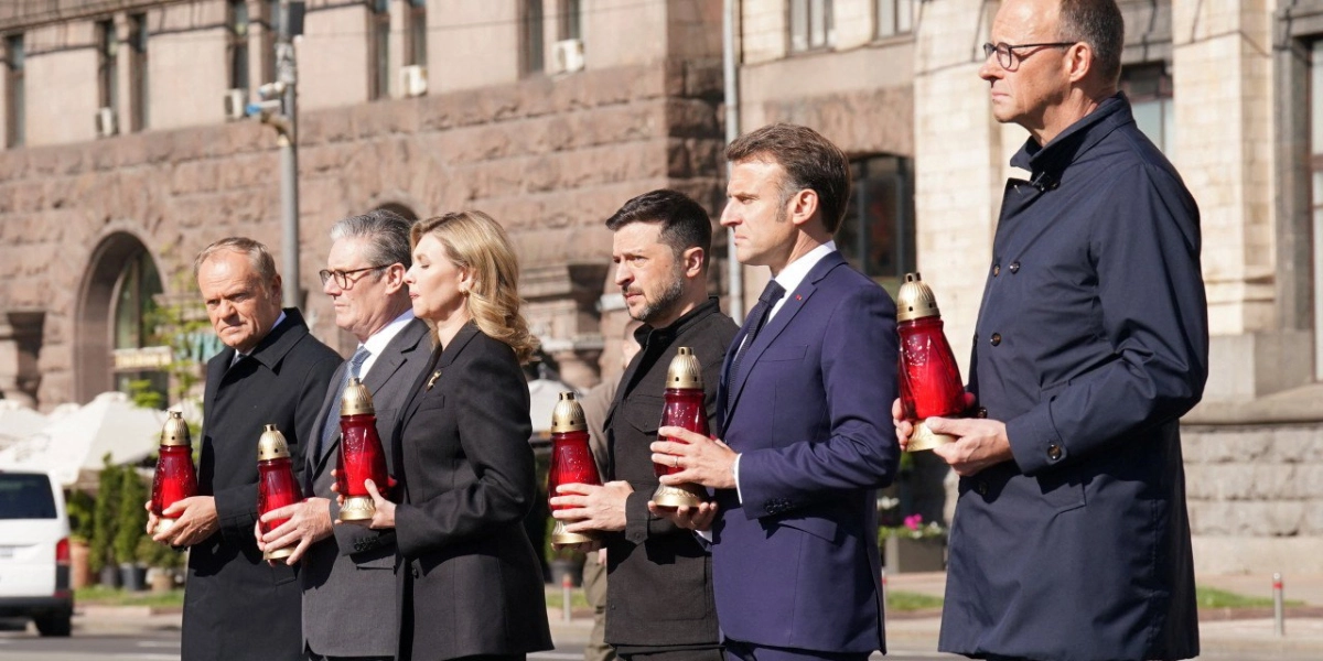 Εμανουέλ Μακρόν, Φρίντριχ Μέρτς και Κιρ Στάρμερ ταξίδεψαν στην πρωτεύουσα της Ουκρανίας με τρένο δημοσιεύοντας τα σχετικά βίντεο στα social media ενώ εκεί θα τους συναντήσει ο Ντόναλντ Τουσκ. Σε κοινή δήλωσή τους οι ηγέτες των τεσσάρων μεγαλύτερων στρατιωτικών δυνάμεων της Ευρώπης κατηγόρησαν τον Πούτιν ότι «εμποδίζει τις προσπάθειες για την εξασφάλιση μίας διαρκούς ειρήνης».