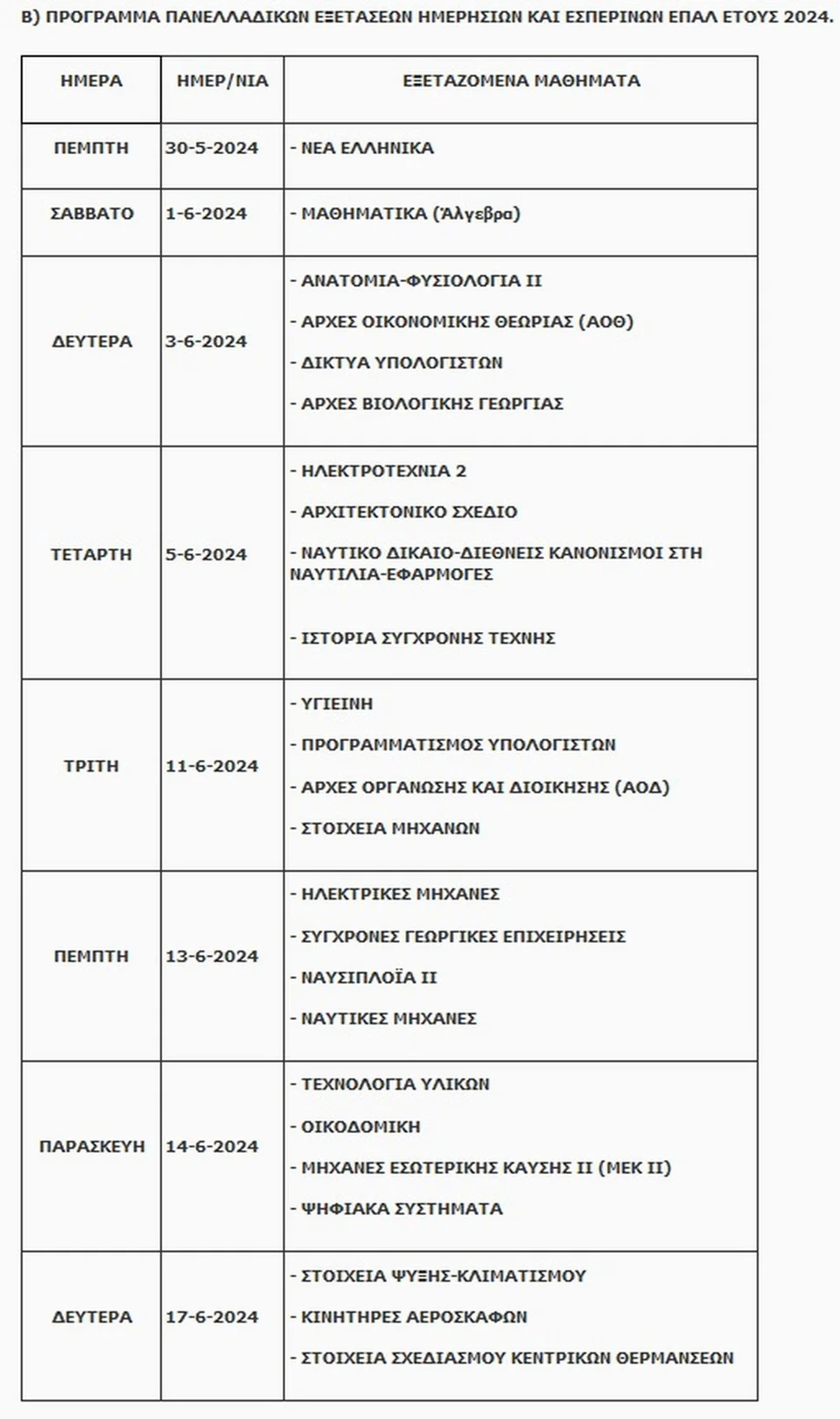 Η εξεταστέα ύλη και τα θέματα των εξετάσεων είναι κοινά για όλους τους υποψηφίους ημερησίων και εσπερινών ΕΠΑΛ.