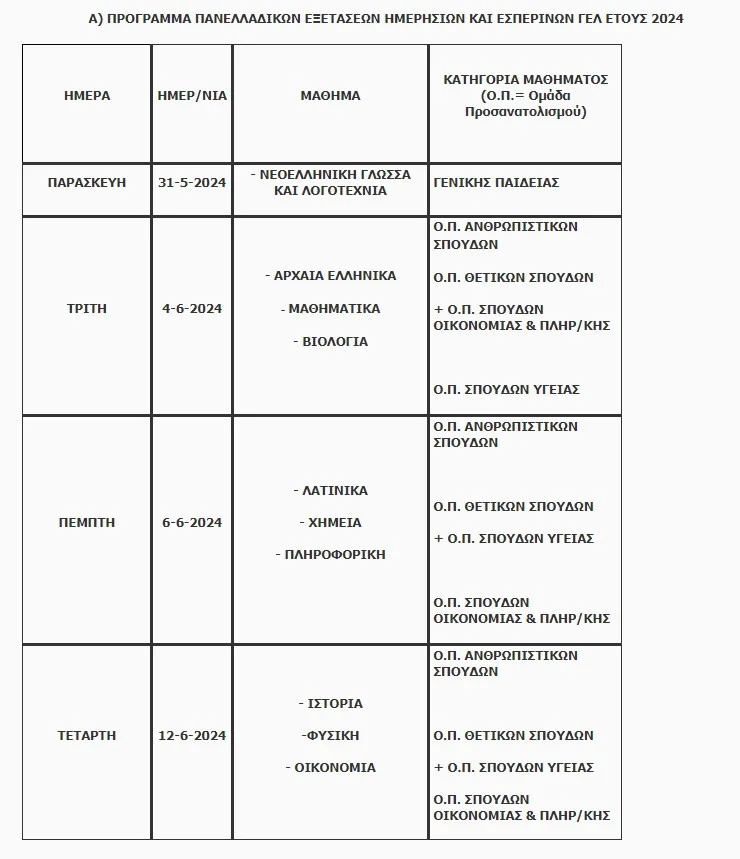 Το πρόγραμμα των Πανελληνίων 2024 για τα ΓΕΛ