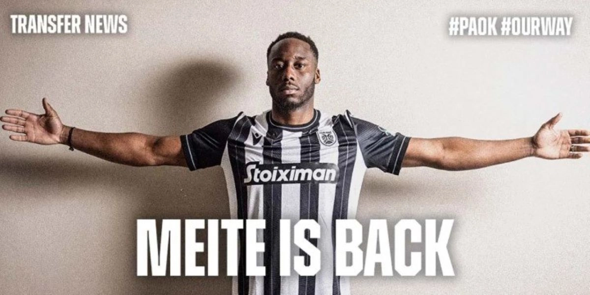«Η ΠΑΕ ΠΑΟΚ ανακοινώνει την απόκτηση του Σουαλιό Μεϊτέ από την Μπενφίκα, με μορφή δανεισμού μέχρι το τέλος της σεζόν 2024-25, με οψιόν αγοράς. Ο Γάλλος μέσος επιστρέφει στην Τούμπα και θα φοράει τη φανέλα με τον αριθμό 82.