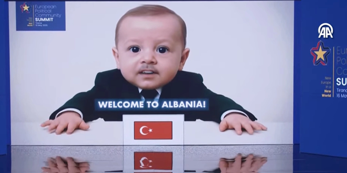 Οι διοργανωτές, με τη χρήση βεβαίως της τεχνητής νοημοσύνης, μετέτρεψαν τους ηγέτες που συμμετέχουν σε… μωρά και μέσω της οθόνης καλωσόρισαν τους προσκεκλημένους στην Αλβανία, ο καθένας στη γλώσσα του.