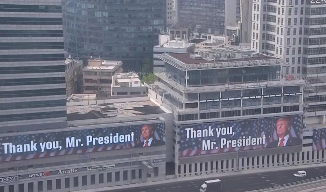 «Thank you, Mr. President» γράφουν οι δρόμοι στο Τελ Αβίβ σε μια προσπάθεια του Ισραήλ να ευχαριστήσει τον Αμερικανό πρόεδρο Ντόναλντ Τραμπ για την επίθεση στις τρεις πυρηνικές εγκαταστάσεις του Ιράν.
