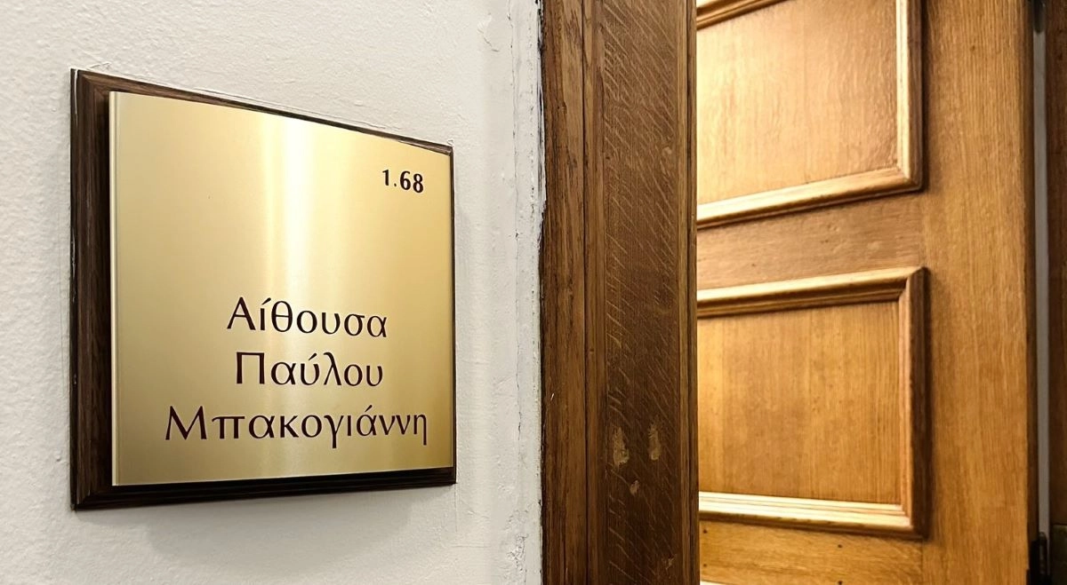 Έξω από την αίθουσα τοποθετήθηκε πλακέτα με την επιγραφή αίθουσα «ΠΑΥΛΟΣ ΜΠΑΚΟΓΙΑΝΝΗΣ», τα αποκαλυπτήρια της οποίας έκανε ο Πρόεδρος της Βουλής Κωνσταντίνος Τασούλας, μαζί με τη βουλευτή Ντόρα Μπακογιάννη και τα εγγόνια τους. Εντός της αίθουσας αναρτήθηκε πίνακας με την προσωπογραφία του αείμνηστου Παύλου Μπακογιάννη, έργο του αλεξανδρινού διακεκριμένου εικαστικού καλλιτέχνη Κώστα-Ηρακλή Γεωργίου, γνωστού με το ψευδώνυμο Kostas. Την προσωπογραφία παραχώρησε στη Βουλή η οικογένειά του.
